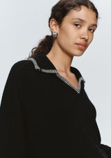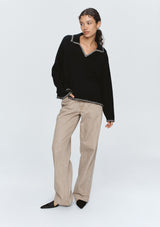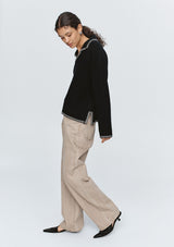 The Ida Jumper by Marle is knitted in a wool cashmere yarn. This jumper falls to a hip length and has two splits at the side and is finished with a contrasting blanket stitch