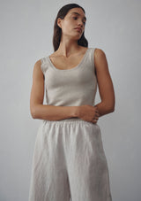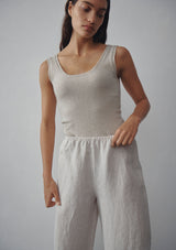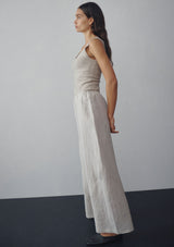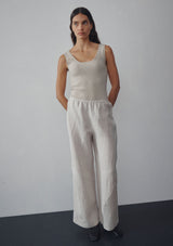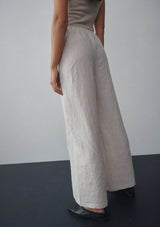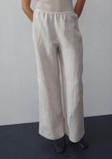 The Ida Pant by New Zealand designer, Marle is a relaxed silhouette crafted in a signature flax linen. Featuring an elasticated waistband and a wide leg.
