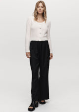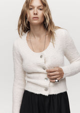 The Jacinta Cardigan from New Zealand designer, Marle, features a fitted silhouette with a deep round neckline, centre front opening, shell buttons, full length sleeves and falling at a semi-cropped length. Crafted in an Alpaca and Wool yarn finished with a subtle curly, boucle texture, the Jacinta Cardigan offers both comfort and style. Whether you’re going for a casual or dressed up look, this cardigan is a versatile addition to any outfit.