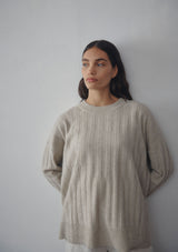 The Joni Jumper by New Zealand designer, Marle is knitted in a wool blend yarn. The jumper features an oversized and relaxed fit with a dropped shoulder and a thick rib stitch.