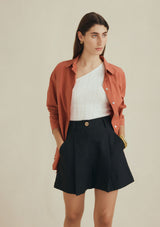 The Marion Short by Marle is crafted in a heavy weight linen. Featuring a flat waist band, belt loops and a zip closure with an oversized wooden button. These shorts have two tucks at the front which accentuate the relaxed silhouette, falling at a flattering length.