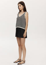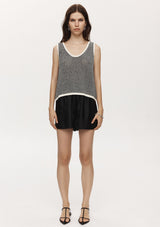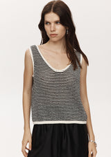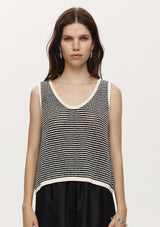 The Nova Top from NZ designer, Marle features a deep soft V-neck and wide singlet straps. Knitted using two tones to create a contrasting stripe in an open weave stitch, finished with an ivory border. Crafted from 100% cotton, the Nova Top has a relaxed and boxy silhouette.