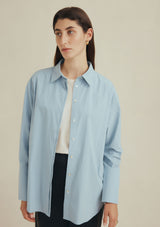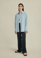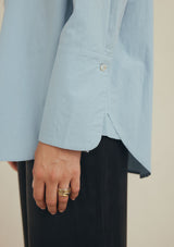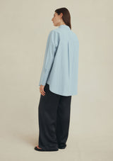 The Pepper Shirt by Marle features a classic shirt collar, shell button down closure, full length cuffed detailed sleeves with a yoke and pleat detailing on the back. This oversized shirt is crafted from a cotton and silk which is lightweight and perfect for transeasonal dressing.