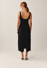 The Quinn Dress from New Zealand designer, Marle features a wide, round neckline, low scooped back and is designed to sit close to the body, falling into a straight, pencil silhouette through the skirt. The top of the dress features a subtle curve hem under the bust and there is a vertical split at the back. This slim fitting, timeless dress is an elegant choice for any special occasion, both day and night.