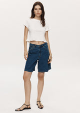 The Relaxed Jean Short from NZ designer, Marle features a contemporary silhouette with a slightly wide leg for a flattering fit. With a button zip fly and front and back pockets, they offer both style and functionality. Crafted from classic cotton denim in a blue wash, these versatile shorts are perfect for upgrading your seasonal wardrobe.