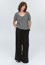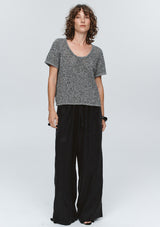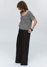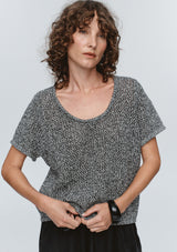 The Rumi Top by Marle is a lightweight short-sleeve top constructed in a 100% cotton - black and ivory mélange yarn. Designed with a relaxed, boxy shape and finished with a wide scoop neckline. Suitable for layering or standalone wear.