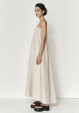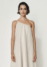 The Sage Dress from Marle features one shoulder styling and a relaxed A-line silhouette created by a subtle gather around the chest. The adjustable metal strap lets you customise the fit to your body. This full-length dress is crafted from a signature flax linen and expertly tailored to flatter with its longline silhouette, blending both fashion and comfort.