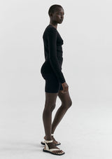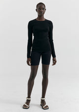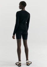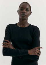 The Soren Top features a fitted silhouette, finely knitted in 100% Organic Cotton. It has a round neckline, long sleeves, and a subtle eyelet detail down the centre front and back.
