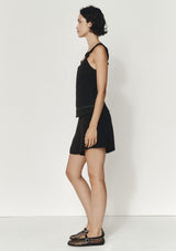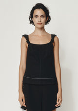 The Tess Top from Marle features a soft scooped neckline with wide straps that are finished with knotted detail on each side, side zip fastening, tonal seam detail near the hemline and a fitted shape through the body. This top is crafted from a ramie and linen cloth and and expertly tailored to flatter, blending both fashion and comfort.
