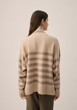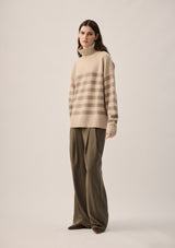 The Vada Jumper by New Zealand designer, Marle is a luxurious, oversized silhouette with a drop shoulder and exaggerated long sleeves and a contrast stripe detail through the body. It features ribbed detailing at the neck, cuff and hem and is knitted in a yak and wool yarn.