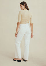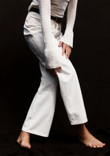 The Wide Leg Jean by Marle features a high rise fit with the classic five pocket styling, a shank button, zipper fly and wide leg silhouette in a light indigo wash.
