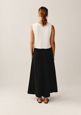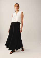 The Zara Skirt from New Zealand designer, Marle features a fixed waistband, secured by an invisible zip closure at the side and is fitted through the waist before falling into an A-line silhouette with vertical splits at the front and back. Crafted in a soft tencel and linen blend, the Zara skirt ensures a luxurious drape and fluidity in the silhouette when walking.