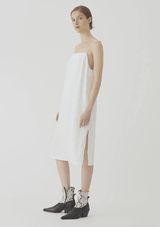 The Square Neck Dress by Matin Studio is crafted from 100% Linen. This design features thin rolled straps with a square neckline and has a relaxed silhouette and side splits at the hemline.