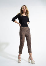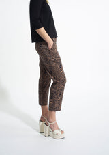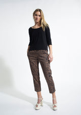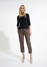 The Fatigue Pant from Mela Purdie features an elasticised waistband with side pockets, a straight fit and a standard rise. This versatile pant is crafted from Mela's Popilene fabrication, a crisp stretch cotton in the animal maize print.