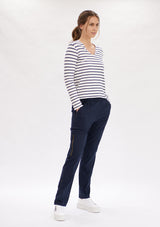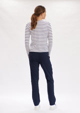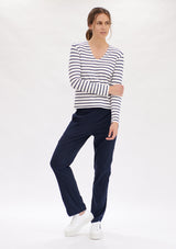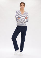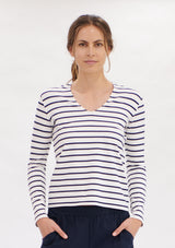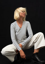 The Artisan Stripe V Neck Top from Mela Purdie features a V neckline, relaxed body and long sleeves. This long sleeve top is crafted from this seasons’ artisan stripe black and white matte viscose jersey; offering comfort, durability and stretch.