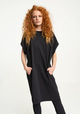 The Base Slide from Mela Purdie features a modern cocoon silhouette, generous boat neckline, dropped armhole and cap sleeves for generous shoulder coverage. Cut to finish just above the knee to create versatile layering options. Added functionality of Base Slide includes side pockets. This top is crafted from Base Knit; a smooth, lightweight, quick drying, wrinkle and pill resistant fabrication.
