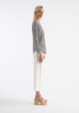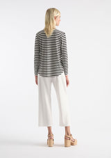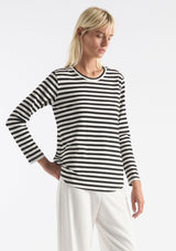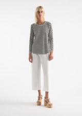 The Bistro Stripe Knit Studio Top from Mela Purdie features a crew neckline, full length sleeves and a soft curved hemline. This is a must have essential for every wardrobe, offering optimal comfort and stretch. Crafted from a mid-weight knit jersey fabrication in the timeless Bistro Stripe.
