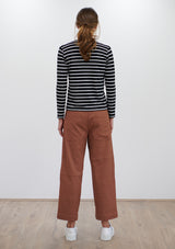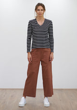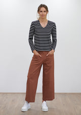 The Block Stripe V Neck Sweater from Mela Purdie features a V neckline, long sleeves, straight hem and relaxed body. This top is crafted from this season’s block stripe matte jersey, offering comfort, durability and stretch.