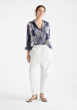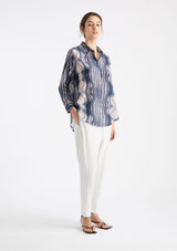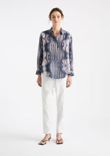 The Silk Soft Shirt by Mela Purdie features a classic shirt collar, concealed front button closure, full length sleeves with shirt cuffs and a back yoke with pleat detailing. Silk Crepe De Chine is Mela's luxuriously lightweight printed Silk, boasting a sumptuous soft handle, matte surface and beautiful drape in the exclusive Canyon Print.