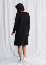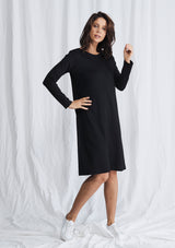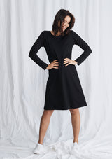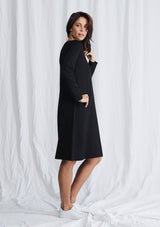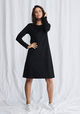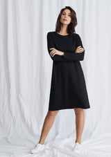 The L.S Quay Dress from Mela Purdie features a round neckline, long sleeves, and a relaxed A-Line fit through the body. This mid-length dress is crafted from a Compact Knit, which is similar to Mela’s Jersey fabrication, but heavier in weight.