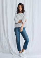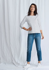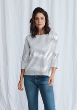 The Mela Purdie Relaxed Boatneck features a softly scooped boat neckline and 3/4 length sleeves. This style falls to the hip and is crafted from Compact Knit, offering comfort, durability and stretch