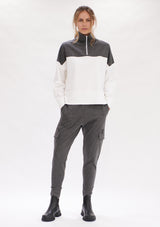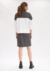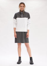 The Slouch Sweater by Mela Purdie features a zip front, high collar and dropped shoulder armhole. This relaxed sweater is crafted from a Compact Knit which is similar to Mela’s Jersey fabrication, but heavier in weight. Available in both solid colour options and spliced colour options to elevate your leisurewear.