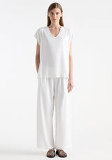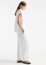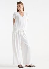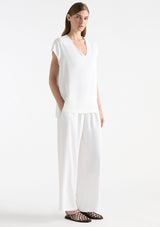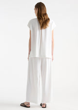 The Pace Pant from Mela Purdie features an elasticised waist, side pockets at hips and a slightly cropped wide leg. This pant is crafted from Mela Purdie’s luxurious Crema fabrication, lending to its buttery soft, polished feel for unparalleled comfort and fluid movement.