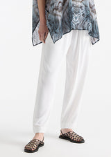 The Profile Pant from Mela Purdie features an elasticised waistband, side pockets at hips and a full-length straight legs with elasticated back hem. This pant is crafted from Mela Purdie’s luxurious Crema fabrication, lending to its buttery soft, polished feel for unparalleled comfort and fluid movement.