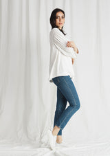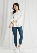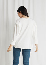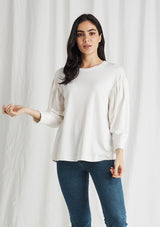 The Mela Purdie Cruise Sweater is crafted in Mela's signature Matte Jersey fabrication. Featuring a generous gathered 3/4 length sleeve and a round neckline.