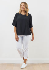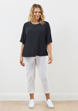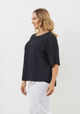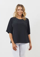 The Mela Purdie Plaza T is your effortless daily staple. Crafted from Mela‰۪s new season creation Macro-Mousseline, perfect for travelling and cut for a relaxed fit. The Plaza T features a scooped neckline, å_ length sleeves and pleat back detailing. With its elegant simplicity, wear this piece from work to weekend.