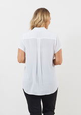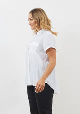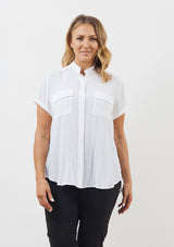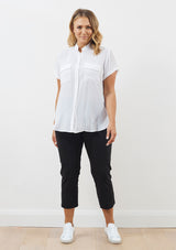 The Mela Purdie Stand Collar Blouse is crafted from Macro-Mousseline, a silky non-stretch fabrication. Ideal for travelling, this top features a button-down front, neat standing collar, and short sleeves.