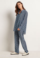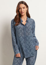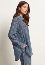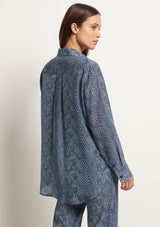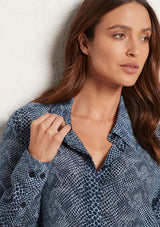 The Denim Reptile Silk Soft Shirt from Mela Purdie features a classic shirt collar, concealed front button closure, full length sleeves with shirt cuffs and a back yoke with pleat detailing. This shirt is cut from Mela's Silk Crepe De Chine, lightweight and boasting a sumptuous soft handle, matte surface and beautiful drape.