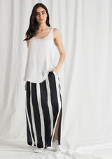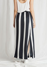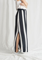 The Cabana Skirt by Mela Purdie, now features in the Domino Stripe Satin Print. The Cabana Skirt is designed to sit in your waist and has relaxed straight cut silhouette that falls below the knee.
