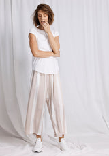 The Explorer Pantin Domino Stripe has been crafted from Mela Purdie’s non-stretch fabrication, Supreme Satin. The Explorer Pant features in a wide leg design, with a gathered elastic waistband that sits on the hips.