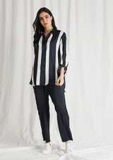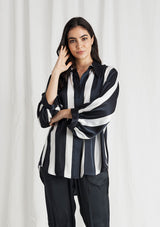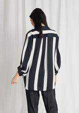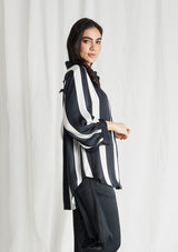 The Verandah T is crafted from a 100% Japanese Technical Polyester. This designer top by Mela Purdie features a v-neckline, ¾ peasant sleeve, relaxed silhouette in the body and placket detailing on the back.