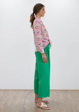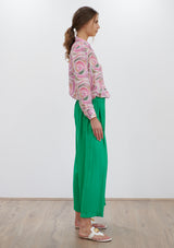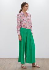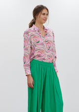 The Fizz Print Soft Shirt by Mela Purdie features an open collar, button front with cover, and long sleeves with button cuff. Crafted from 100% Printed Silk.