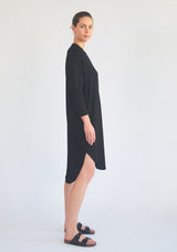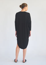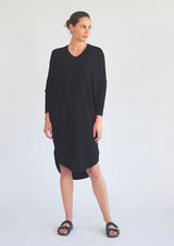 The Mela Purdie Floating Dress features a soft bound V-Neckline, dropped armhole and firm tube sleeves, mixed with generous proportions through the body. The hemline has an scooped hemline, falling just below the knee and scooping up at the side to create an elongating effect. Crafted from Matte Jersey, a stretch fabrication.