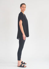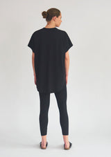 The Mela Purdie Base Knit Floating Shell features a soft bound V-Neckline, dropped armhole and firm tube sleeves, mixed with generous proportions through the body that pleater off to a flattering exaggerated scooped hemline, scooping up at the side to create an elongating effect.  Layer over leggings or Tracks for a modern sweater look. This Top is crafted from Base Knit; a smooth, lightweight, quick drying, wrinkle and pill resistant fabrication.