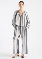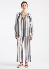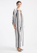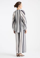 The Gradient Stripe Silk Pace Pant from Mela Purdie features an elasticised waist, side pockets at hips and a slightly cropped wide leg. Cut in the bold Gradient Stripe Print, Silk Crepe De Chine is Mela's luxuriously lightweight printed silk, boasting a sumptuous soft handle, matte surface and beautiful drape.