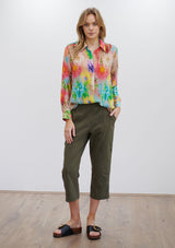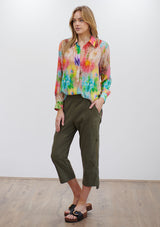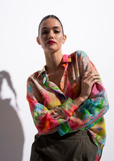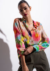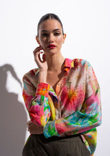 The Soft Shirt by Mela Purdie has been designed in the Hothouse Floral Print. This classic silhouette features an open collar, button front with cover, and long sleeves with button cuff. Crafted from printed 100% Silk.