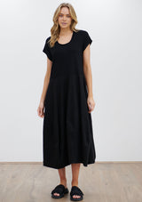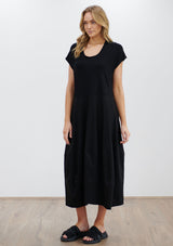 The Carafe Shell Dress from Mela Purdie features a scooped neckline, non-set in cap sleeves and an A line shaped body with seam detail panelling. The top portion of this dress is crafted from Matte Jersey and from the waist down it is crafted from Microprene - this dress is crafted from a mix of Matte Jersey and Microprene.