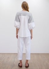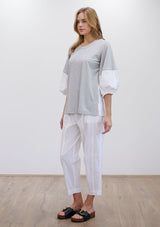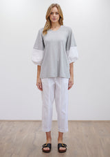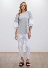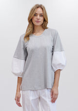 The Puff Sweater by Mela Purdie features a round neck top with ¾ length puff sleeves. This sweater is crafted from a mix of Matte Jersey and Microprene.