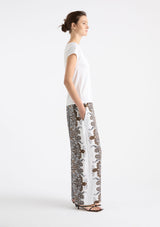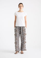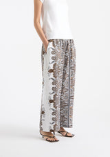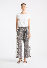 The Pace Pant from Mela Purdie features an elasticised waist, side pockets at hips and a slightly cropped wide leg. This pant is crafted from a breathable, mid weight European Pure Linen in the vibrant Lattice Print, offering a wide leg silhouette and a beautiful light airy feel.