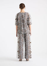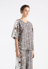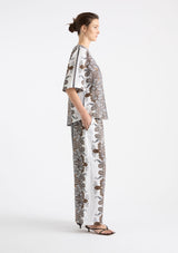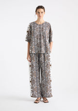 The Plaza T from Mela Purdie features a scoop shaped neckline, elbow length sleeves and a simple pleat at the nape of the neck. This top is crafted from a breathable, mid weight European Pure Linen in the vibrant Lattice Print, offering a boxy fit through the body and a beautiful light airy feel.