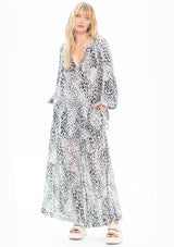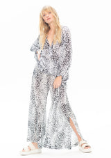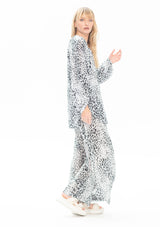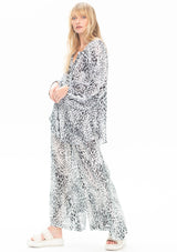 The Escape Blouse from Mela Purdie features a flattering neckline with an option to wear open as a V-neck or single button up for a rounded finish. Gathering and fixed cuffs enhance the billowy shape of the sleeves, allowing you to have some fun with your styling. Cut in striking Lima Print Silk, offering a stunning monochrome brush stroke animal print silk. Silk Crepe De Chine is luxuriously lightweight, boasting a sumptuous soft handle, matte surface and beautiful drape.