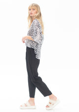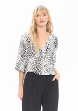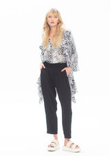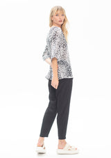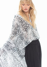 The Tab Plaza T from Mela Purdie is a transeasonal essential. Featuring a V Neckline, elbow length sleeves and a relaxed cut. Crafted from Mela's Silk Crepe De Chine, a luxuriously lightweight Silk boasting a sumptuous soft handle, matte surface and beautiful drape. Lima offers a stunning monochrome, brush stroke animal print silk.