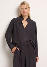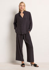 8265F67The Bevel Neck Shirt from Mela Purdie features a subtle V neckline, wide pleat detailing at front, full length sleeves and finished with a straight hemline. Crafted from 100% Technical Polyester, Mache offers a full bodied, high fashion look that combines style and comfort in a user-friendly fabrication that is machine washable and ideal for travel.