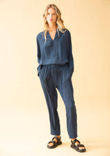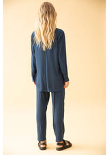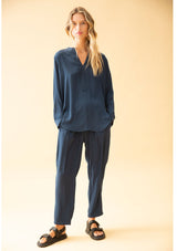 The Chello Shirt by Mela Purdie features an open v neckline with scallop detail and long sleeves with cuffs. Crafted from Mela’s non-stretch fabrication, Mache. Mache offers a full bodied, high fashion look that combines style and comfort in a user-friendly fabrication that is machine washable and ideal for travel.