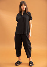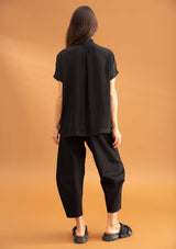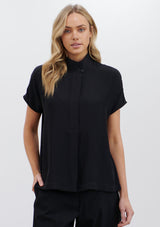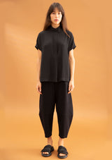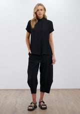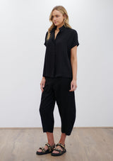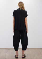 The Cylinder Shell Top by Mela Purdie features a high neckline with a covered placket button opening, non-set-in short sleeves and a relaxed silhouette with a hemline that falls at the hips. Crafted from 100% technical polyester - Mache offers a full bodied, high fashion look that combines style and comfort in a user-friendly fabrication, that is machine washable and ideal for travel.
