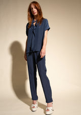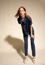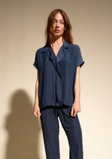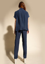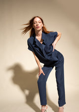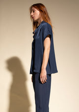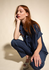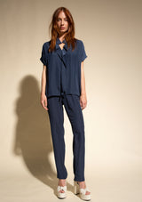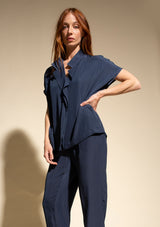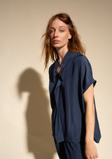The Mache Diamond Shell by Mela Purdie features a s petite stand collar with a subtle V neckline and soft ruffles, capped sleeves and finished with a straight hemline. This elegant top is crafted from 100% technical polyester, Mache offers a full bodied, high fashion look that combines style and comfort in a user-friendly fabrication, that is machine washable and ideal for travel.